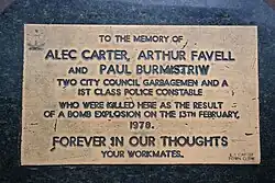 A plaque was unveiled at the site of the explosion in George Street on 13 February 2008, the 30th anniversary of the blast.