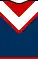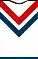 Red, white and blue have been the colours of every jersey design in the club's history;[61] however, the jersey design has undergone several alterations. During World War II, the design of the jersey was modified because the dye used to colour jerseys was needed for the war effort.[62] This saw Eastern Suburbs playing in different colours and an altered design. Instead of using the traditional hoops, the side used a sky-blue based jersey and a red and white V-strip around the collar. This is the only noted time in the club's history where the traditional deep blue, red and white combination was absent from the jersey. After the war, the V-strip design reverted to the original blue that had been present in the original jerseys, and the single red and white stripes around the shirt's chest were incorporated with a single white stripe surrounded by a red stripe on either side. This jersey appeared in the 1950s and remains the team's base design.[17]