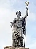 He purchased and paid for the erection in Friary Park in May 1911[8][11] of a statue of Queen Victoria as Peace that was grade II listed by Historic England in 1983.[6] It bears a dedication dated 7 May 1910 to the memory of Edward VII who died on 6 May 1910.[6] It stands on 200 tons of rock from Devon, shaped in the form of a tor.[8] The statue originally had Victoria holding a dove but at some time that was changed to a spear.[11] The statue was restored by Barnet Council in 2022 and the dove reinstated.[11]