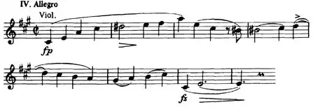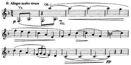 The glockenspiel tries in vain to hail the momentary establishment of A major; but in the end it is the insistence of C♮ (the note with which the work so strikingly began) that forces the movement and the symphony to close in a desolate A minor, without melody or rhythmic pulse.[4]