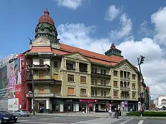 Széchényi Rt had the palace built between 1911 and 1913[2] according to the plans of the architect László Székely.[3] The building was intended for renting apartments on the upper floors, while the ground floor was reserved for shops.[4] Székely's architectural office was located in this building. The architect Michael Wolf completed his professional practice in this office, who then took over the office from Székely. In the interwar period, Wolf was one of the most prominent architects of Timișoara.[5]