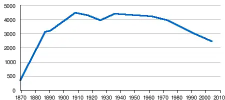 | 1910 | 4,541[12] | Hungarians | 73.31% |