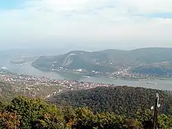 ![]() The north end of Szentendre Island is visible on the left of this aerial view of the Danube Bend | |