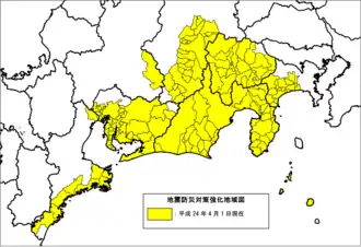 As serious damage from strong shaking and huge tsunamis is expected, the Japanese government has designated this region as Areas under Intensified Measures against Earthquake Disaster.[5]