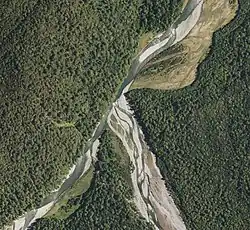 The Tūtaekurī River starts near the Hope Pass, in the Southern Alps and flows north-west to join the Ahaura River.[1] The Ahaura joins the Grey River which flows to the Tasman Sea at Greymouth.[2] Tūtaekurī River has been its official name since 21 June 2019. Tūtae kurī is a grass with the latin name agropyron multiflorum.[3][4]