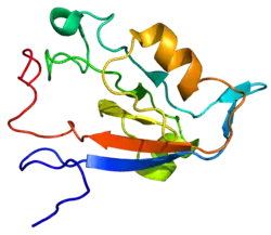 Tax1-binding protein 3 is a protein that in humans is encoded by the TAX1BP3 gene.[5][6][7] This name is in reference to the Tax1 protein of the Human T-cell Lymphotropic Virus (HTLV) which was used to discover Tax1BP3 in a yeast 2-hybrid screen and subsequently verified by co-IP. TIP1, as it is also known, is a PDZ domain containing protein. However, unlike most PDZ domain proteins which act as scaffolds and often contain multiple PDZ domains as well as other protein domains, TIP1 is essentially just the PDZ domain. This has led to the speculation that TIP1 acts as an inhibitor, either acting to separate PDZ binding motifs from their normal targets or simply preventing the protein to migrate away from the cytosol.