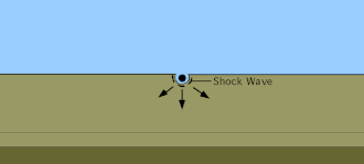 | 4.54×10−4 | 581 MWh | A real 0.454-kiloton-of-TNT (1.90 TJ) charge at Operation Sailor Hat. If the charge were a full sphere, it would be 1 kiloton of TNT (4.2 TJ). ![]() |