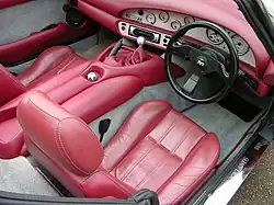 Steering was optionally power-assisted and worked via rack and pinion with adjustable steering column. There were 2.2 turns lock-to-lock for the power-assisted steering or 2.5 for unassisted. The steering wheel was 350 mm (14 in) in diameter and leather-covered, although other wheels could be specified by the customer. The standard fit was by Personal, in keeping with a majority of TVR models.