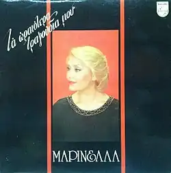 Marinella – Ta oreotera tragoudia mou (Greek: Μαρινέλλα – Τα ωραιότερα τραγούδια μου; Marinella – My most beautiful songs) is a compilation of recordings by popular Greek singer Marinella, under the PolyGram RecordsPhilips series "Ta Oreotera Tragoudia Mou". This album is part of the compilation. It was released in 1974 in Greece[1][2] and includes 14 recordings by Marinella from 1967 to 1972 for the PolyGram label.[3]