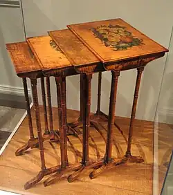 - Nested tables are a set of small tables of graduated size that can be stacked together,[10] each fitting within the one immediately larger. They are for occasional use (such as a tea party), hence the stackable design.