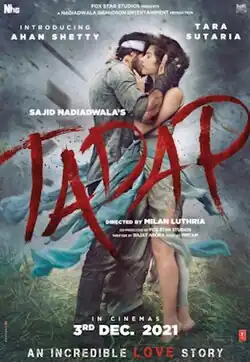 Tadap (transl. Yearning) is a 2021 Indian Hindi-language romantic action thriller film directed by Milan Luthria and produced by Sajid Nadiadwala under the Nadiadwala Grandson Entertainment banner, with Fox Star Studios serving as distributor and co-producer.[6] A remake of the Telugu film RX 100 (2018), the film stars debutant Ahan Shetty and Tara Sutaria.[7] The film released theatrically on 3 December 2021 to mixed reviews with praise towards its music, performances and action sequences but criticism towards screenplay and dialogues.
