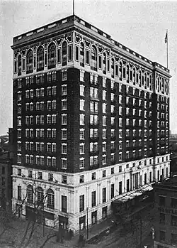 The hotel building, completed in 1912, has twelve stories, and operated with 450 rooms.[1] It sits on the corner of Chapel and College streets.[2]