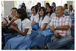 Students listening to a drug symposium sponsored by the Philippine National Police -