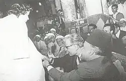 Taha Hussein was born in Izbet el Kilo, a village in the Minya Governorate in central Upper Egypt.[1] He was the seventh of thirteen children of lower middle class Muslim parents.[1] He contracted ophthalmia at the age of two, and became blind as a result of malpractice by an unskilled physician.[6][7] After attending a kuttab, he studied religion and Arabic literature at El Azhar University; but from an early age, he was dissatisfied with the traditional education system.