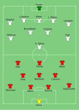 - ^ a b "Tactical Line-up – Group B – Spain-Tahiti" (PDF). FIFA.com. Fédération Internationale de Football Association. 20 June 2013. Archived from the original (PDF) on December 15, 2013. Retrieved 20 June 2013.