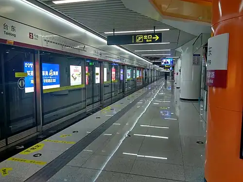 Taidong (Chinese: 台东) is a station on Line 1 and Line 2 of the Qingdao Metro. It opened on 16 December 2019.[1][2]