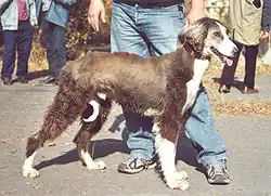 The Taigan is characterized by its medium-length, slightly curly coat, which comes in a diverse array of colors ranging from white and various shades of fawn to greys and black examples.[1] Since the breakup of the Soviet Union, the Taigan's population has experienced a notable decline. However, the Russian Kennel Club has undertaken concerted efforts to preserve the breed, along with the Tasy breed. These efforts include recognising both breeds and actively seeking out high-quality breeding stock to support their continued existence.[2]