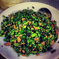 | Tsang Ying Tou | 蒼蠅頭 | cāng yíng tóu | Sichuan | Dish consisting of a stir-fried garlic chives, minced pork, and fermented black beans. |