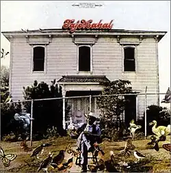 The Victorian house featured on the cover, known as the Salt Box, was once located on Bunker Hill Avenue in Los Angeles' Bunker Hill neighborhood. Designated a city landmark in 1962,[4] it was one of only two homes that were saved and relocated, only for both be destroyed by an arson-caused fire in 1969 while awaiting restoration at the future site of the Heritage Square Museum.[5] Bunker Hill Avenue no longer exists and the entire 2-block area around the home's original location is now the site of the Wells Fargo Center.