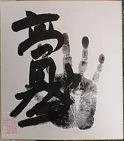 Original tegata (handprint and signature ) of sumo wrestler Takamisakari