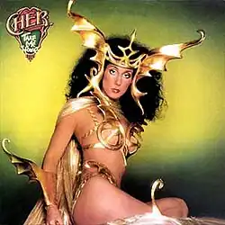 Commercially, the album debuted at number 75 on the Billboard 200 on the issue date of February 10, 1979, reaching its peak position, 25, on May 12.[3][4] The success of the title track boosted sales of the album and the album is also known for its cover photograph of a scantily-clad Cher in a gold, Bob Mackie-designed Viking outfit that received a lot of attention at the time. Take Me Home was also the first album to have three tracks mixed: "Take Me Home" (12" Mix), "Wasn't It Good" (12" Mix) and "Git Down (Guitar Groupie)" (12" Mix) available on the "Hell on Wheels" single. Gene Simmons, her boyfriend at the time, received a credit on the album owing to his presence on the track "Git Down (Guitar Groupie)".