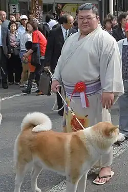 Takekaze Akira (born June 21, 1979 as Akira Narita) is a former professional sumo wrestler from Akita Prefecture, Japan. A former amateur sumo champion, he turned professional in 2002, reaching the top makuuchi division the following year. He was a runner-up in one tournament, earned two special prizes for Fighting Spirit, and one gold star for defeating a yokozuna. Takekaze is in first place for the slowest promotion from makuuchi debut to the third highest sekiwake rank in history. Aged 35 years and two months, he is in first place for the eldest to make his sekiwake debut post World War II. He was a member of Oguruma stable. He retired in January 2019 to become an elder of the Japan Sumo Association under the name Oshiogawa-oyakata and is the owner of Oshiogawa stable.