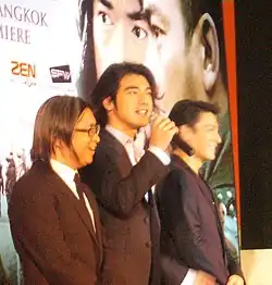Kaneshiro (center) in 2007 promoting The Warlords, alongside director Peter Chan and co-star Andy Lau