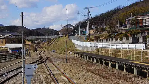 The station originally had two opposed side platforms serving two tracks, forming a passing loop on the single-track line, with the station building located on the south side and the platforms connected by a footbridge.[1] From 15 October 2016, the up (for Komagawa) platform was decommissioned and the track removed, with trains in both directions using the remaining (former down) platform. The station is unattended.