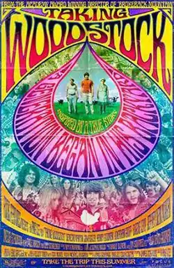 Taking Woodstock is a 2009 American historical musical comedy-drama film about the Woodstock Festival of 1969, directed by Ang Lee. The screenplay by James Schamus is based on the memoir Taking Woodstock: A True Story of a Riot, a Concert and a Life by Elliot Tiber and Tom Monte.[3] The film premiered at the 2009 Cannes Film Festival,[4] and opened in New York and Los Angeles on August 26, 2009, before its wide theatrical release two days later. It received mixed reviews and was a box office failure.