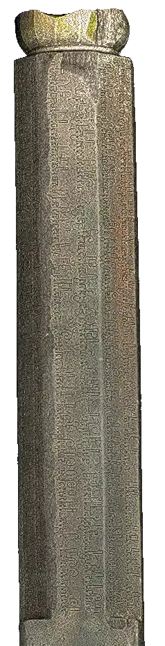 ![]() 350 CE Talagunda Pillar Sanskrit inscription, Pranavesvara temple ruins, Karnataka Talagunda pillar | |
