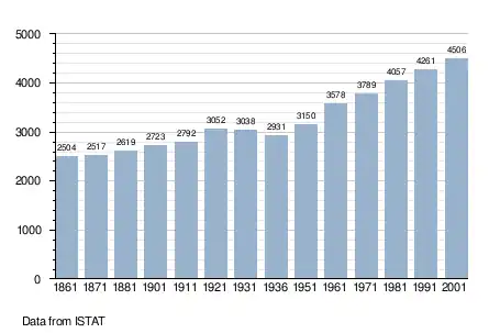 - ^ "Popolazione Residente al 1° Gennaio 2018". Italian National Institute of Statistics. Retrieved 16 March 2019.
