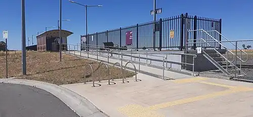 ![]() Station forecourt and entrance as viewed from the carpark, December 2021 | ||||||||||||||||