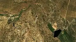 ![]() Sentinel-2 picture of the big bend in the Taldymanaka (above) and reservoir in the middle course of the river (below right). | |