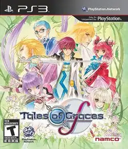 The PlayStation 3 port, titled Tales of Graces f, was first revealed on July 28, 2010's Weekly Shōnen Jump and officially announced by Namco on August 2, 2010.[30][31] The producer, Hideo Baba, explained the port was decided in February 2010 due to fan demand.[32] The port adds an "Accelerate Mode" to the gameplay and an after-story entitled Lineage & Legacies.[11] Preorderers received a DVD which contains a video of the game's protagonists meeting with characters from Tales of Destiny 2.[3] A demo was released on October 7, 2010, and the game was released on December 2, 2010.[3][33] A limited edition of the game included a letter set.[34] Namco and House Foods restarted the packaged mabo curry to promote the game.[35] Tales of Graces f was later re-released with a 15th anniversary cover art edition on August 4, 2011, and with PlayStation 3 The Best label on August 2, 2012.[36][37]