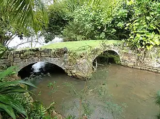 The Taleyfac Spanish Bridge, known locally as Taleyfac Tolai Acho, is a historic stone arch bridge off Guam Highway 2 in Agat, Guam. It crosses the Taleyfac River with two stone arches; it is 36-foot (11 m) long and 15-foot (4.6 m) wide. It originally had wood timber flooring, which has long ago been replaced. One of the arches has been damaged by the removal or loss by erosion of some of its stones.[2]