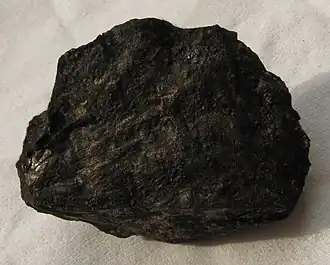 Talnakhite is a mineral of chalcopyrite group with formula: Cu9(Fe, Ni)8S16.[2] It was named after the Talnakh ore deposit, near Norilsk in Western Siberia, Russia where it was discovered as reported in 1963 by I. Budko and E. Kulagov.[3] It was officially named "talnakhite" in 1968.[4][5] Despite the initial announcement it turned out to be not a face centered high-temperature polymorph of chalcopyrite, but to have composition Cu18(Fe, Ni)18S32. At 80 °C (176 °F) to 100 °C (212 °F) it decomposes to tetragonal cubanite plus bornite.[6][7]