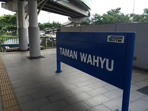 The Taman Wahyu Komuter station is a Malaysian commuter rail train station located in the east side of and named after Taman Wahyu, Kuala Lumpur.