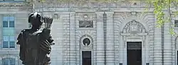 The USS Delaware was burned in 1861 at the Gosport Navy Yard to prevent Confederate capture at the start of the Civil War.[3] In 1866, the salvaged figurehead was transferred to the United States Naval Academy and placed on a pedestal facing Bancroft Hall, the Naval Academy's dormitory that is said to be the largest dormitory in the United States,[4] and is flanked by Stribling Walk on both sides.