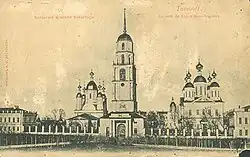 The city's layout began to change after 1781. As part of the redevelopment of the Russian cities at the 18th century the new system of provincial cities was to be embodied in their newest appearance – in the spatial and architectural order, expressed in geometric correctness and regularity of the international style of classicism, in contrast to the previously existing picturesque structure, which began to be perceived as a mess.[18] The general plan of Tambov was approved on December 9, 1781, by Catherine II. The urban planning document was aimed at clearing the urban space of old, random buildings, freely located, and creating an ordered grid-structure with geometrically regular lines of houses and straight streets. In 1781, Governor-General Roman Illarionovich Vorontsov was invited to Tambov from St. Petersburg to the newly opened position of the provincial architect from the "soldiers' children" of the collegiate registrar Vasily Antonovich Usachev, who became the coordinator of the implementation of Tambov's urban planning plan. The streets of the city center were based on the old roads that formed around the fortifications of the fortress, erected in 1636 under the governor Roman Boborykin. The central axis of the foundation of the oldest building in Tambov, the Transfiguration Cathedral now does not fit into the regular plan of the central part of Tambov, recalling the initial originality of the space of the fortified city.[18] A number of longitudinal streets appeared: First and Second Dolgie (Dolovye Streets) and Obvodnaya, which along the river valley. Rzhavets circled the western part of the city. From Tambov there were roads to Penza and the district towns of Kozlov, Morshansk, Lipetsk. Streets sprout along these roads. Kuzminskaya Street led out through the village. Kuzminka on the Astrakhan tract. Noblemen settled on the central cross street. The street is named Shirokaya Dvoryanskaya. In the shopping districts of the city, Khlebnaya Square was formed, it is bordered by Khlebnaya and Muchnaya streets. Near Sennaya (later Bazaar) squares are formed from the east by Proyezhaya, and from the west – by Vyez'zhaya streets. The outskirts of the streets were inhabited by petty officials – clerks and odnodvorets, which was reflected in their names. The southern part of the city was built up at the beginning of the 19th century. New, First, Second, Third, Fourth, Fifth streets appear here, and later – Kirpichnaya, Kamennaya and Invalidnaya streets.[19]