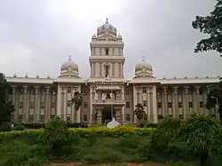 The university is situated in a campus of about 900 acres (3.6 km2), granted by the State government of Tamil Nadu, making it the largest university in the state by area. Buildings and blocks for the administrative and academic departments are located in the campus. The administrative block with its gopuram motif can be seen from the National Highway connecting Thanjavur with Trichy. The library is similar to the Indian Parliament at New Delhi.[1] The Karikalan Gallery, built on the occasion of the World Tamil Conference is capable of accommodating about 2000 people.[2]