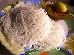 - Sevai or idiyappam are rice noodles usually in steamed rice cakes. It is sometimes served soaked in coconut milk.