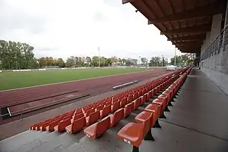 Tamme stadium was one of the host venues for the 2012 Baltic Cup, for which a temporary 1,950-seat stand was erected on the opposite side of the grandstand, temporarily raising the stadium's total capacity to 3,595.[12] On 3 July 2014, the stadium hosted its first and only UEFA Europa League qualification match, when Estonian third-tier club Tartu Santos faced Tromsø in front of 1,169 spectators.[13][14] It was also one of the venues for the 2023 UEFA Women's U17 Championship.