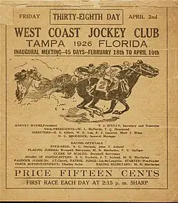 During the 1950s, the racecourse was a popular attraction with many sportswriters who came to the Tampa Bay area to cover baseball spring training. Legendary names like Grantland Rice, Red Smith, Fred Russell and Arthur Daley became regular visitors, calling the track the "Santa Anita of the South."