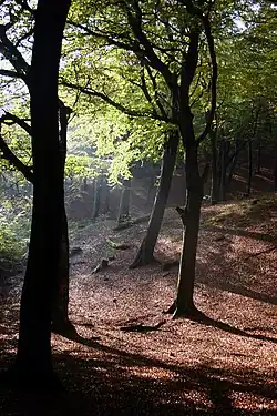Tandle Hill Country Park is a country park in Royton, Greater Manchester, England. It consists of approximately 110 acres (45 ha), a combination of beech woodland and open grassland. The park contains a countryside centre (opened in 1994), picnic areas, children's play area and numerous trails and paths into the surrounding area. Two countryside rangers are based at the countryside centre. In fine weather conditions, it offers views of Manchester and the Welsh mountains.