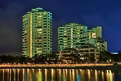 - Fortredale, a 19-storey condominium which stood at the junction of Tanjong Rhu Road and Fort Road. Architect and academic Robert Powell wrote in 2000 that the "eye-catching" tower block "stands apart for its strongly individualistic expression." He further wrote that it "exudes confidence and defiance of convention" and "struts its stuff along Tanjong Rhu Road while its neighbours look, in comparison, aesthetically geriatric."[10]