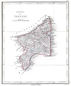 Thanjavur District was one of the districts in the erstwhile Madras Presidency of British India. It covered the area of the present-day districts of Thanjavur, Tiruvarur, Nagapattinam, Mayiladuthurai and Aranthangi taluk, Karambakkudi taluk of Pudukkottai District in Tamil Nadu. Apart from being a bedrock of Hindu orthodoxy, Tanjore was a centre of Chola cultural heritage and one of the richest and most prosperous districts in Madras Presidency.