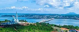 Tanjungpinang, also colloquially written as Tanjung Pinang, is the capital city of the Indonesian province of Riau Islands. It covers a land area of 144.56 km2, mainly in the southern part of Bintan Island, as well as other smaller islands such as Dompak Island and Penyengat Island.[4] With a population of 227,663 at the 2020 Census,[5] it is the second largest city of the province, after Batam;[6] the official estimate as at mid 2023 was 234,840 (comprising 118,600 males and 116,250 females).[3] Tanjungpinang is a historic city of the Malay culture, having served as the capital of both Johor Sultanate and Riau-Lingga Sultanate.