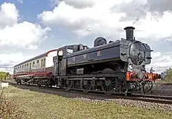 Joan on the Golden Valley Light Railway showing the inverted saddle tank around the smokebox