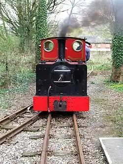 The inverted saddle tank was a variation of the Wing Tank where the two tanks were joined underneath the smokebox and supported it.[18] This rare design was used for the same reasons as the wing tank but provided slightly greater water capacity. The Brill Tramway locomotive Wotton is believed to have had an inverted saddle tank. The inverted saddle tank was a speciality of W.G.Bagnall.[19]