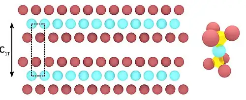 In the 1T phase the single trilayers are stacked always in the same geometry, as shown in the corresponding image.